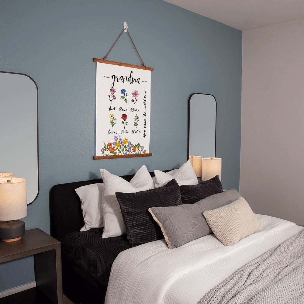 Birthflower Grandma Wall Tapestry Gift for Mothers day Birth Flower Wall Art for Nana