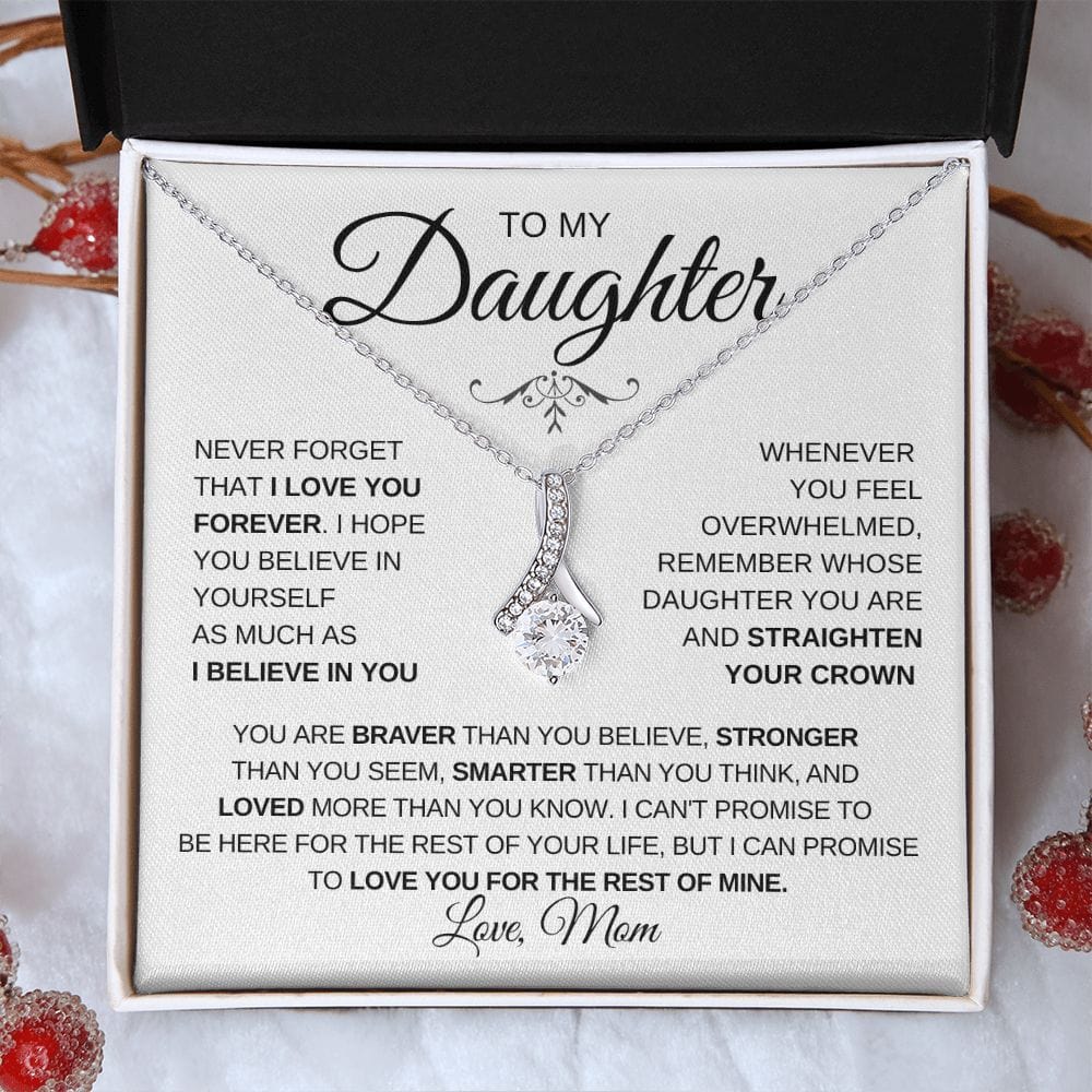 Imagine her reaction when she opens this stunning gift! The Alluring Beauty necklace features a petite ribbon shaped pendant that is sure to dazzle your special someone. Whether it's a birthday or anniversary, make sure to get her a gift she will love for years to come.