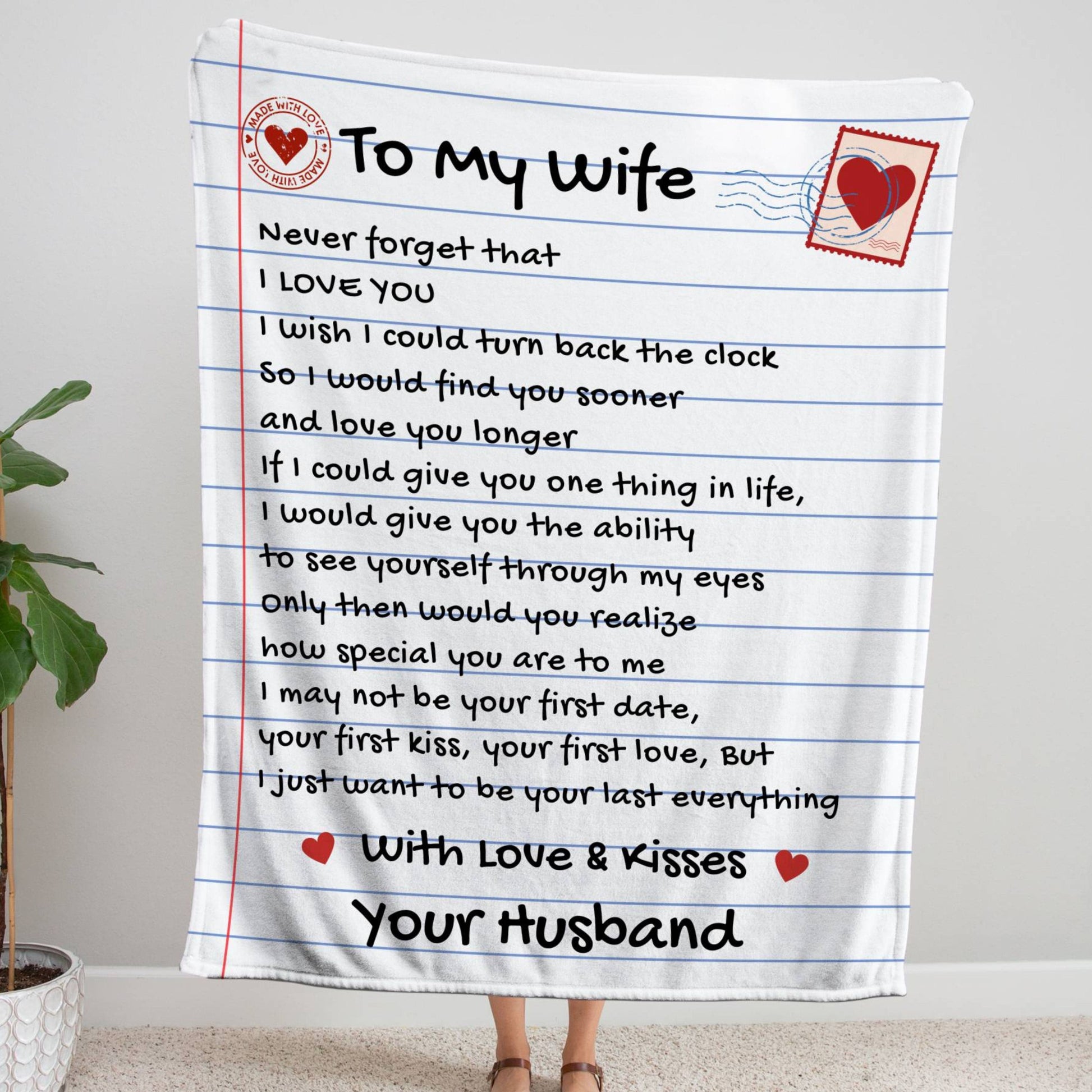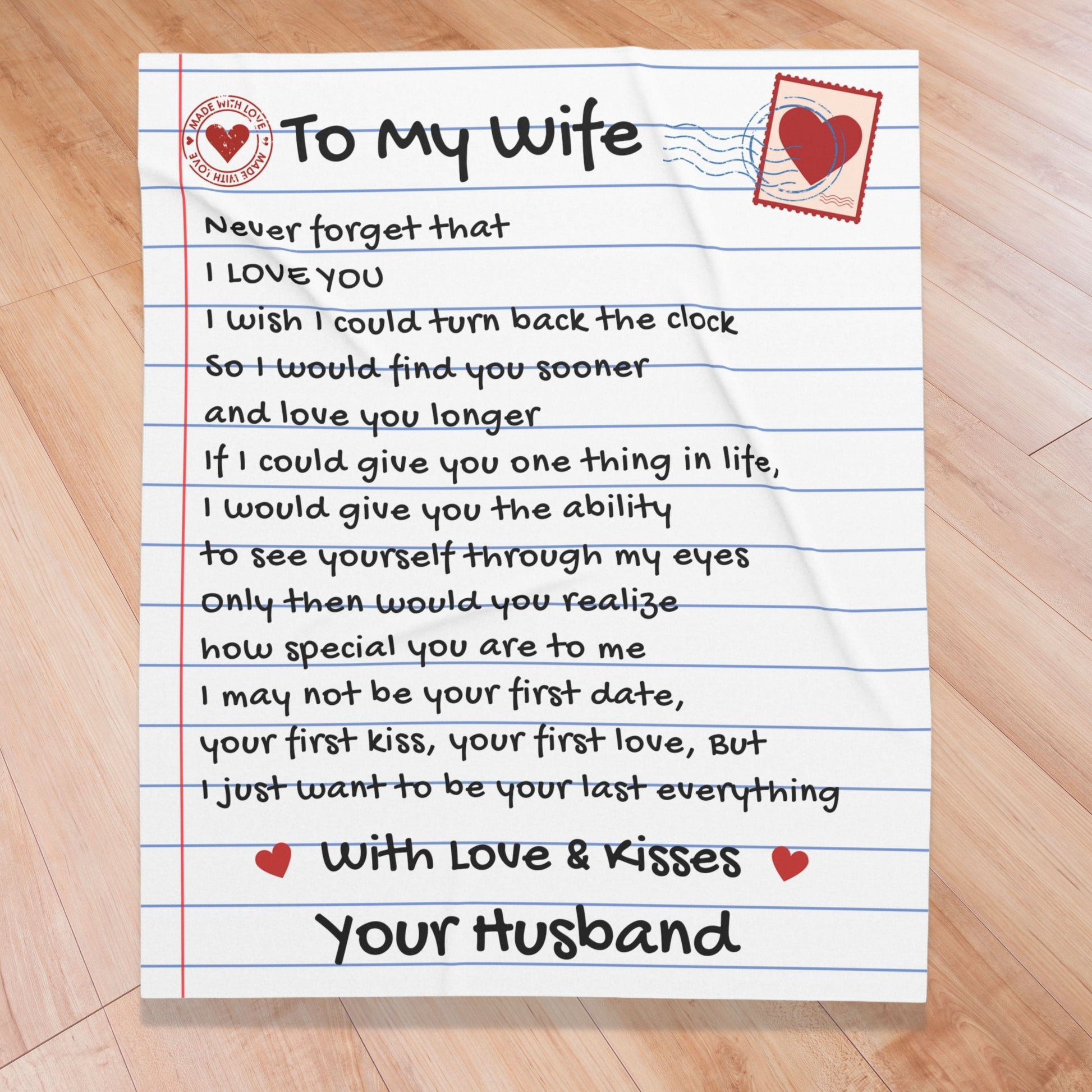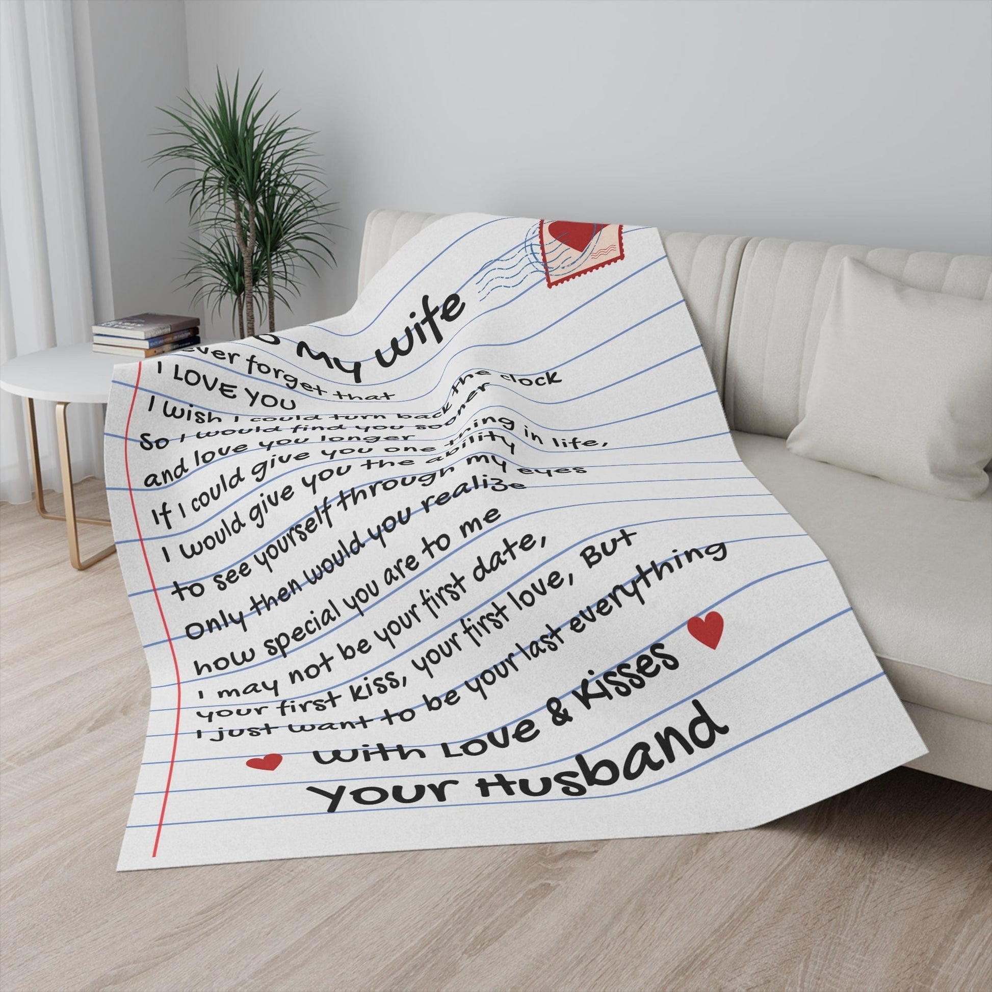 This Love Letter blanket is the perfect gift for your wife. Made from soft, cozy material, it's perfect for snuggling up on the couch or bed. The blanket features a heartfelt message from you, the husband, to your wife, expressing your love and affection. It's a unique and thoughtful way to show her how much she means to you. The blanket can also be a cherished keepsake for her to treasure for years to come.